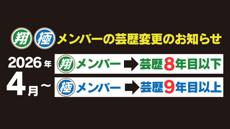 2026年4月より「翔メンバー」「極メンバー」の芸歴を以下の通りに変更いたします。